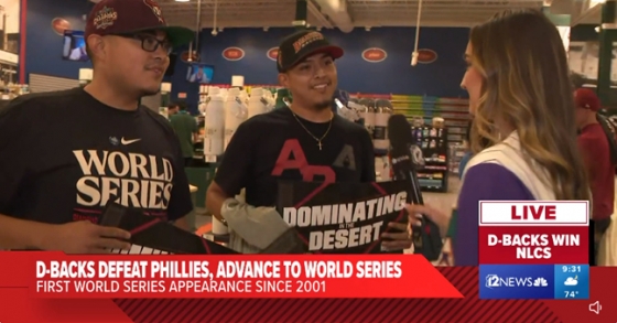 애리조나가 무려 22년 만에 월드시리즈 무대에 진출하자 현지 분위기는 축제 현장을 방불케 하고 있다. 애리조나 피닉스 ABC 방송은 속보로 월드시리즈 진출 소식을 다뤘고, 애리조나주에서 가장 큰 스포츠용품판매 업체는 월드시리즈 관련 굿즈(Goods)를 판매하기 시작했다.