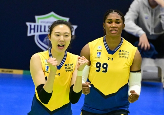 승리가 확실시됐던 4세트 막판 20-20 동점을 허용했다. 수원 현대건설을 지킨 건 '역시 양효진'이었다. 4연속 득점으로 매치포인트를 만들었고 결국 팀을 단독 선두로 올려놨다.