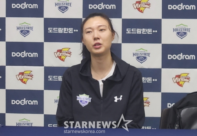 동료들의 실력 향상을 옆에서 흐뭇하게 지켜보는 동시에 칭찬을 아끼지 않는 양효진이다. 이날 11점을 기록한 김주향에 대해 "주향이가 갖고 있는 걸 잘하는데 생각했던 것보다 본인이 늦게 쫓아가고 늦게 플레이하는 걸 고치려고 노력했다. 시즌 들어 좋아진 것 같다"며 "비시즌 때도 많은 노력을 하고 블로킹이나 공격 타이밍을 선수들도 많이 도와주고 본인도 잘 받아들여 계속 좋아지는 것 같다"고 말했다.