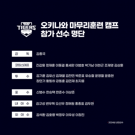 KIA 타이거즈가 일본 오키나와에서 신인들과 함께 2024시즌을 대비한 첫 발걸음을 내디딘다.