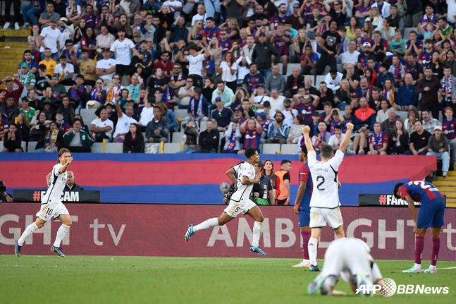 이날 레알은 팀 에이스 주드 벨링엄이 멀티골을 터뜨리는 폭풍활약을 펼쳤다. 전체슈팅 2개를 모두 골로 연결했다. 무엇보다 후반 추가시간 짜릿한 결승골을 뽑아내고 포효했다. 레알 선수들은 환호했고, 바르셀로나 선수들은 고개를 숙였다.