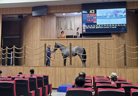 10월 24일 한국마사회 제주목장에 위치한 한국경주마생산자협회 경매장에서 올해 첫 1세 경주마 경매가 개최됐다.