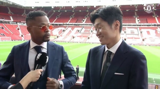 맨유 안방에는 반가운 손님이 찾았다. 부흥기를 이끌었던 절친 박지성과 파트리스 에브르가 응원차 방문한 것이다.