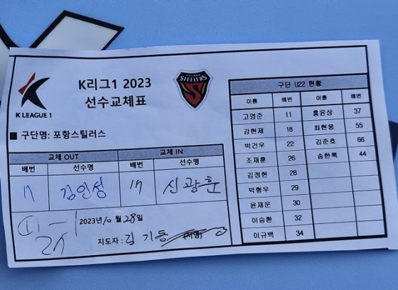 전북은 "김인성, 신광훈의 교체 및 이후 두 선수의 경기 참여에 대해 1차적 문제를 지적했다. 대기심은 7번 김인성을 교체 아웃하고, 17번 신광훈을 투입한다고 교체판을 들었다. 교체표 및 공식기록지에서도 동일하게 기재했다"며 "신광훈은 경기에 참여했고, 김인성은 필드에 남았다. 교체아웃 되어야 할 선수와 교체투입 된 선수가 동시에 경기에 참여했다"고 밝혔다.