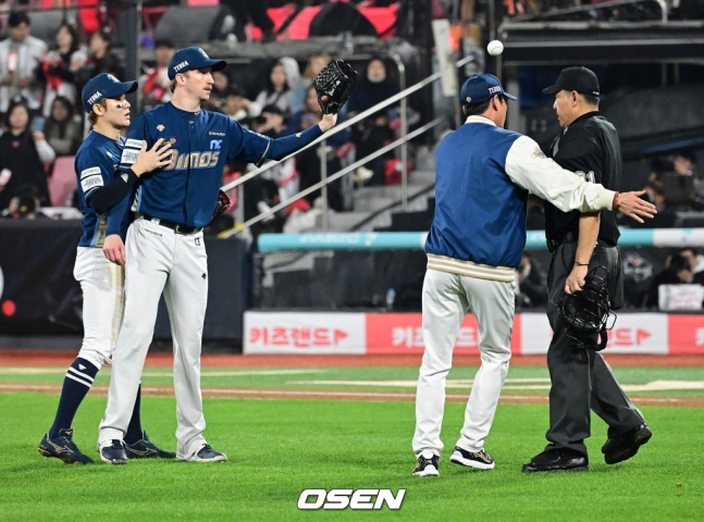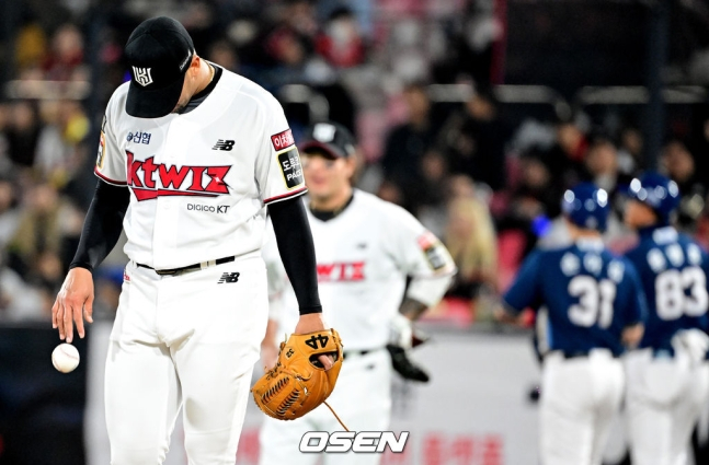 이어진 7회말. 페디가 마운드를 내려가고 김영규가 올라왔다. 또 3루수 서호철이 빠지고 도태훈이 들어갔다. KT는 선두타자 장성우가 좌익선상 안쪽에 떨어지는 안타를 친 뒤 대타 오윤석이 내야 안타를 만들어내며 절호의 무사 2, 3루 기회를 잡았다. KT는 오윤석 대신 대주자 정준영을 투입했다. 하지만 더 이상의 위기는 없었다. 김영규는 문상철을 좌익수 뜬공으로 유도한 뒤 배정대를 3루수 앞 병살타로 솎아내며 7회말을 삭제했다.