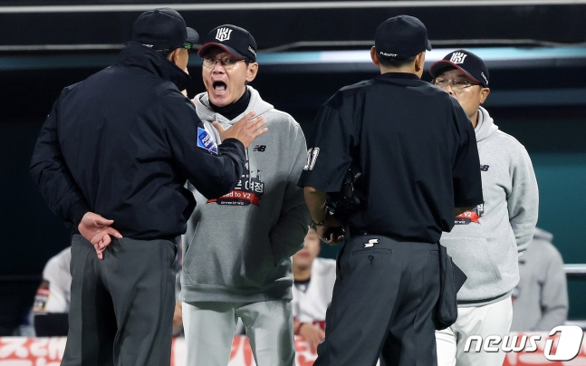 5회부터 경기는 잠시 소강상태로 돌입했다. KT 투수는 이상동에서 손동현으로 바뀌었다. 손동현은 오영수에게 좌중간 안타를 얻어맞았으나, 김형준을 헛스윙 삼진, 김주원을 2루 땅볼로 각각 솎아낸 뒤 손아섭에게 안타를 내줬다. 하지만 박민우를 2루 땅볼로 유도하며 이날 첫 팀의 무실점 이닝에 성공했다. 페디는 5회말에도 마운드에 올랐다. 선두타자 조용호를 삼진 처리한 뒤 문상철에게 볼넷을 내줬다. 풀카운트 끝에 7구째 뿌린 높은 공이 높은 존에서 형성됐으나, 이민호 주심의 손은 올라가지 않았다. 이때 스트라이크 콜을 받지 못한 페디가 갑자기 주심을 향해 양팔을 내밀며 불만을 드러냈다. 그러자 이 주심이 페디를 향해 다가갔고, 이에 강인권 감독이 즉각 주심을 향해 뛰어와 가로막았다. 더 이상의 충돌은 없었다. 이후 김수경 NC 투수코치가 다시 마운드에 올라 페디를 다독였다. 그런데 이번에는 이강철 감독이 그라운드로 나와 항의를 펼쳤다. NC 쪽에서 두 차례 마운드를 방문했다는 뜻으로 보였다. 하지만 심판진은 이 감독의 항의를 받아들이지 않았다. 사실상 강 감독이 나온 건 마운드 방문이 아니라 판단한 것으로 보인다. 잠시 어깨가 식을 법도 했지만, 페디는 흔들리지 않았다. 배정대를 중견수 뜬공으로 잡아낸 뒤 대타 이호연에게 안타를 내줬으나, 김상수를 헛스윙 삼진으로 돌려세우며 5회말을 마무리 지었다.