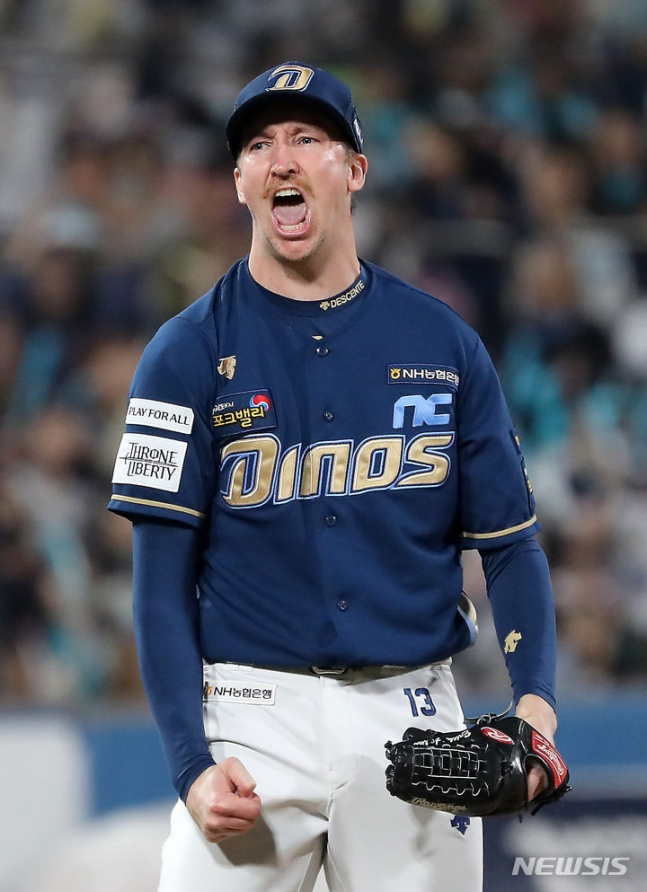 NC 페디, 6이닝(98구) 3피안타(1피홈런) 1볼넷 12탈삼진 1실점 'PO 최다 탈삼진 신기록'