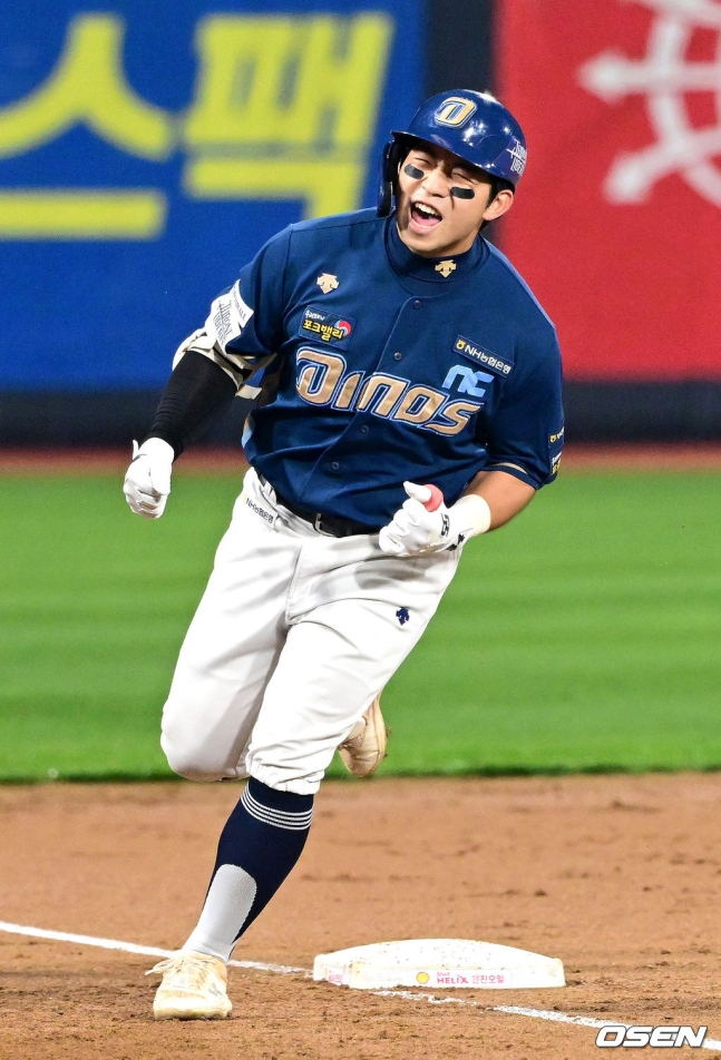 2회초 NC는 큰 것 한 방으로 또 한 점을 달아났다. 선두타자 오영수가 풀카운트 끝에 6구째 높은 속구(149km)를 공략, 좌중간 담장을 넘어가는 솔로포를 작렬시켰다.(2-0) 오영수의 플레이오프 1호 홈런. 비거리는 120m였다. 잠시 흔들리니 쿠에바스는 김형준을 헛스윙 삼진, 김주원을 유격수 뜬공, 손아섭을 2루수 땅볼로 각각 아웃시키며 추가 실점은 하지 않았다.