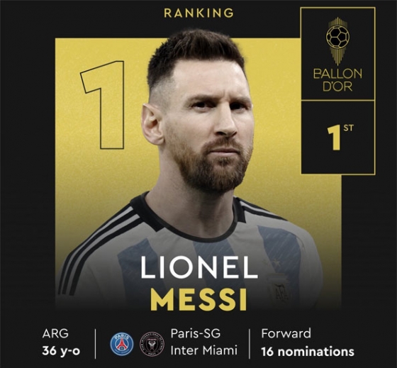 메시는 “모든 분들, 특히 팀 동료들에게 감사하다. 내게 투표해 주신 모든 분들께 감사드린다. 이번 발롱도르는 아르헨티나 모두에게 큰 선물이다. 멋진 한 해를 보낸 홀란드와 음바페를 잊고 싶지 않으며, 앞으로 몇 년 동안 이 상을 수상할 것이다”라고 밝혔다.