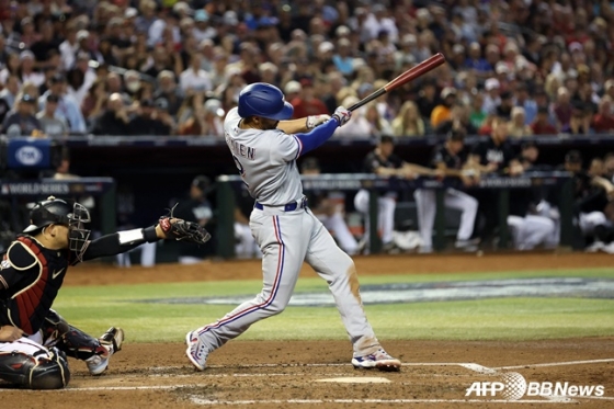 이번 가을에만 8홈런을 작렬한 아메리칸리그(AL) 챔피언십시리즈(ALCS) 최우수선수(MVP)가 빠졌다. 그러나 창단 첫 우승을 향해 불타오르는 텍사스 레인저스 타선은 화력을 막아낼 수 없었다. 오히려 더 뜨거운 열기로 애리조나 다이아몬드백스를 압도했다.