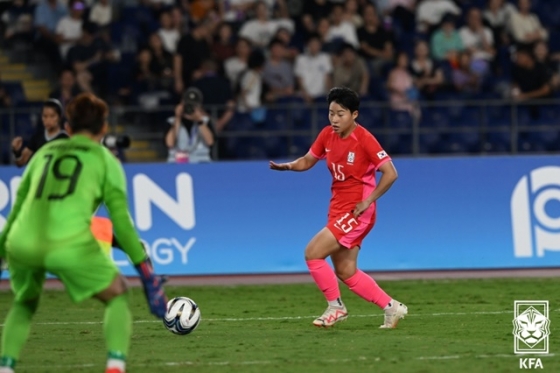 앞서 한국은 태국과 1차전에서 10-1 대승을 거뒀다. 케이시 유진 페어(무소속)와 천가람(화천KSPO)이 나란히 해트트릭을 터뜨렸다. 북한과 2차전에서는 탄탄한 수비에 힘입어 0-0 무승부를 기록했다. '39세 맏언니' 베테랑 골키퍼 김정미(인천현대제철)의 슈퍼세이브도 돋보였다.