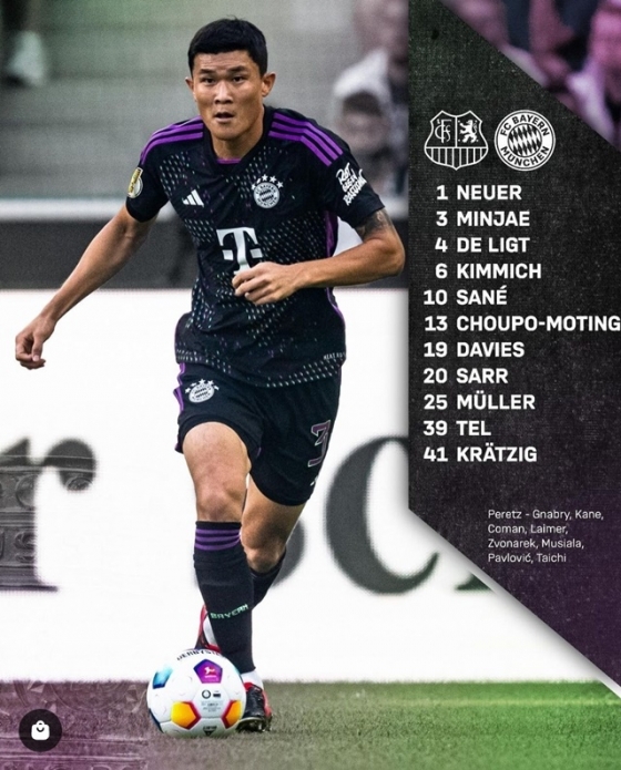 뮌헨은 1.5군을 내보냈다. 해리 케인 등이 빠지기는 했지만 나쁜 조합은 절대 아니었다. 주전 선수들도 꽤 포함됐다. 최근 부상에서 복귀한 베테랑 골키퍼이자 '캡틴' 노이어가 골문을 지켰다. 주전 센터백 조합인 김민재, 마타이스 데리흐트도 출전했다. 양 측 풀백은 보나 사르와 알폰소 데이비스였다. 포백 중 세 명이 주전 멤버였다. 부주장 요슈아 키미히가 중원을 조율했다.