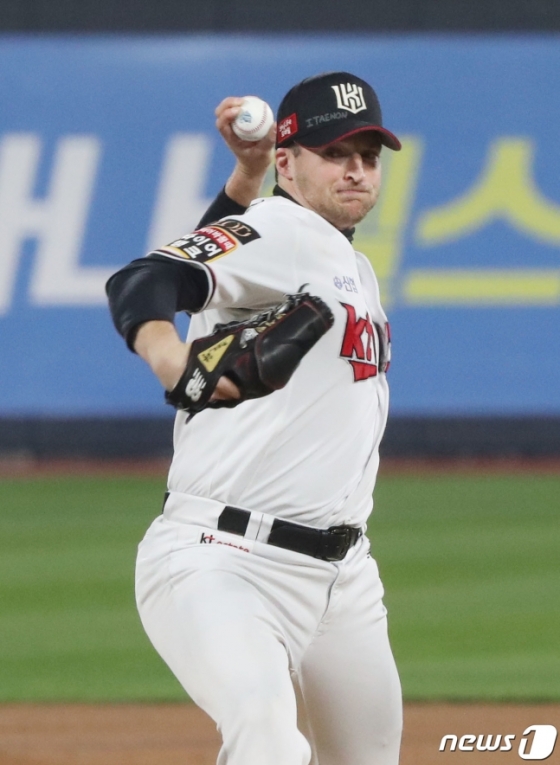 벤자민은 지난달 31일 수원 케이티 위즈 파크에서 열린 NC 다이노스와 2023 신한은행 SOL KBO 플레이오프 2차전(5전3선승제)에서 KT의 선발투수로 마운드에 올랐다. 시즌 말미 컨디션이 좋지 않았던 그는 25일 만에 실전 투구에 나섰다.