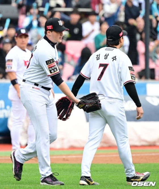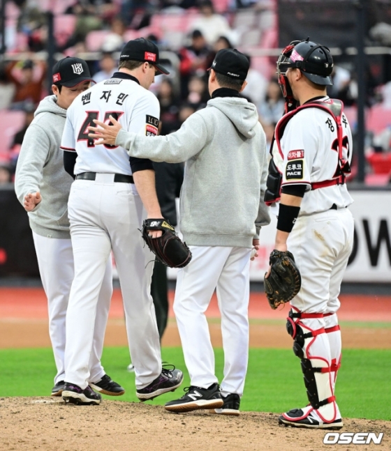 또 이강철 감독은 "4차전을 보니까 엄상백의 구위가 많이 올라왔더라. 벤자민의 다음 투수로 고려하고 있다. 5차전인 만큼 일단 전부 준비를 시켜놓을 것"이라고 이야기했다. 그러면서 "만약 오늘 경기가 열리지 않고 취소된다면 벤자민이 그대로 6일 5차전에 선발 등판할 것"이라 전했다.