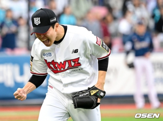 KT는 8회초 손동현을 내리는 대신 마운드에 박영현을 올렸다. 위력투는 여전했다. 선두타자 박민우를 3구째 2루 땅볼로 유도하며 좋은 출발을 알렸다. 이어 박건우를 풀카운트 승부 끝에 6구째 우익수 뜬공 처리한 뒤 권희동은 유리한 0-2의 볼카운트에서 5구째 헛스윙 삼진으로 돌려세웠다. 이닝 종료. 1루 쪽에 운집한 KT 팬들의 함성이 더욱 커졌다. NC는 8회말 이용찬을 올렸고, 삼자 범퇴로 이닝을 이끌었다. 그리고 9회초. KT 클로저 김재윤이 마운드에 올라 NC 타선을 삼자 범퇴 처리하며 수원 팬들을 열광의 도가니에 빠트렸다. KT가 한국시리즈 진출을 확정한 순간이었다.
