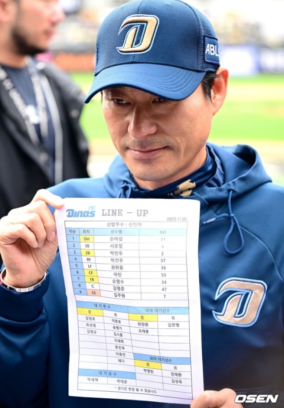 이에 맞서 NC는 손아섭(지명타자)-서호철(3루수)-박민우(2루수)-박건우(우익수)-권희동(좌익수)-제이슨 마틴(중견수)-오영수(1루수)-김형준(포수)-김주원(유격수) 순으로 라인업을 짰다. 선발 투수는 신민혁이었다. 앞서 신민혁은 플레이오프 2차전에 선발 출격해 KT 타순을 상대로 6⅓이닝 동안 단 1개의 안타밖에 내주지 않으며 승리 투수가 됐다.