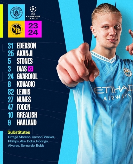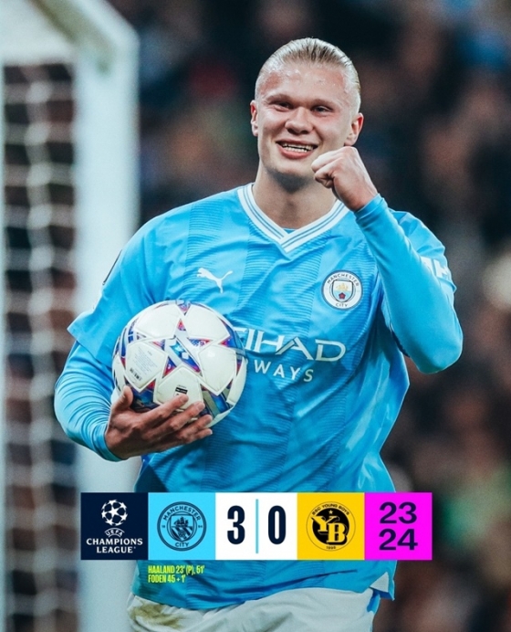 맨시티는 8일(한국시간) 영국 맨체스터의 에티하드 스타디움에서 열린 2023~2024 유럽챔피언스리그 G조 4차전 영보이스(스위스)와 홈경기에서 3-0으로 크게 이겼다.
