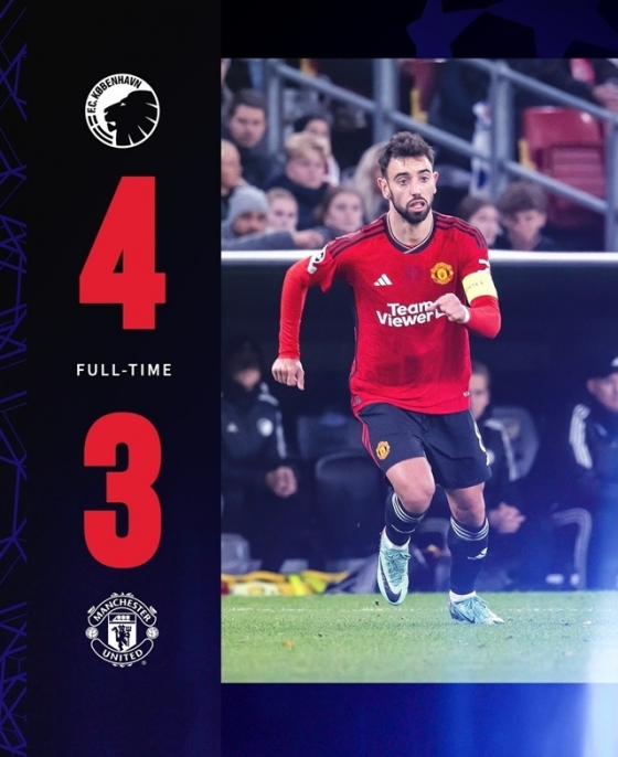 맨유는 9일 오전 5시(한국시간) 덴마크 코펜하겐의 파르켄 스타디움에서 열린 2023~2024 유럽챔피언스리그(UCL) A조 조별리그 4차전 코펜하겐(덴마크)과 맞대결에서 3-4로 패했다. 이로써 맨유는 1승 3패(승점 3)에 머물며 조 최하위(4위)로 떨어졌다. 남은 2경기에서 반전을 이뤄내지 못한다면 충격적인 조별리그 탈락을 경험할 수 있다.