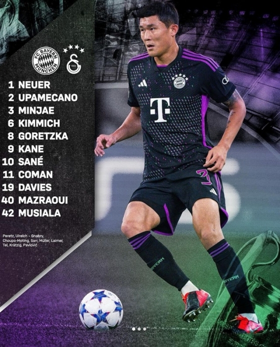김민재는 9일(한국시간) 독일 뮌헨의 알리안츠 아레나에서 열린 2023~2024 유럽챔피언스리그(UCL) A조 조별리그 4차전 갈라타사라이(튀르키예)와 홈경기에서 탄탄한 수비를 과시하며 2-1 팀 승리를 이끌었다. 뮌헨 공격수 해리 케인도 후반에만 2골을 몰아쳐 해결사 역할을 제대로 해냈다.