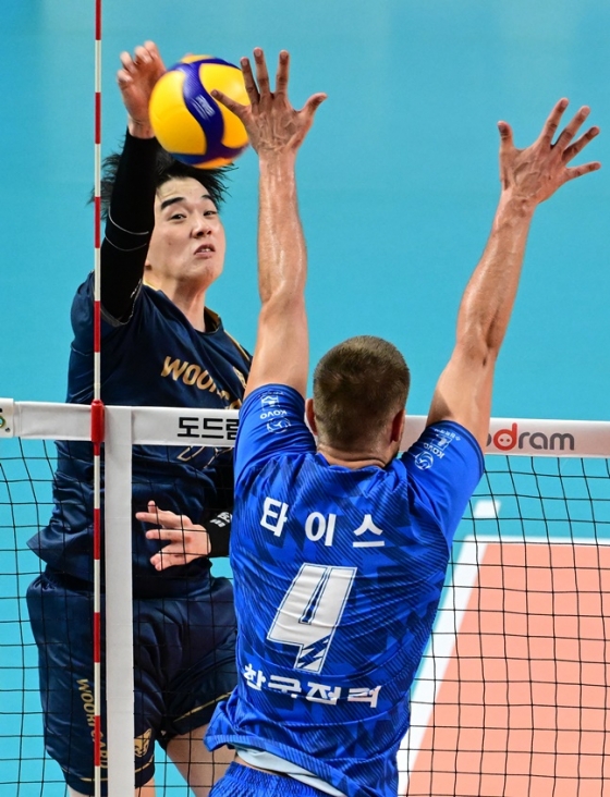 초반부터 근소한 리드를 잡고 이어가던 우리카드는 마테이의 오픈 공격이 신영석에게 막히며 15-16 역전을 허용했다.