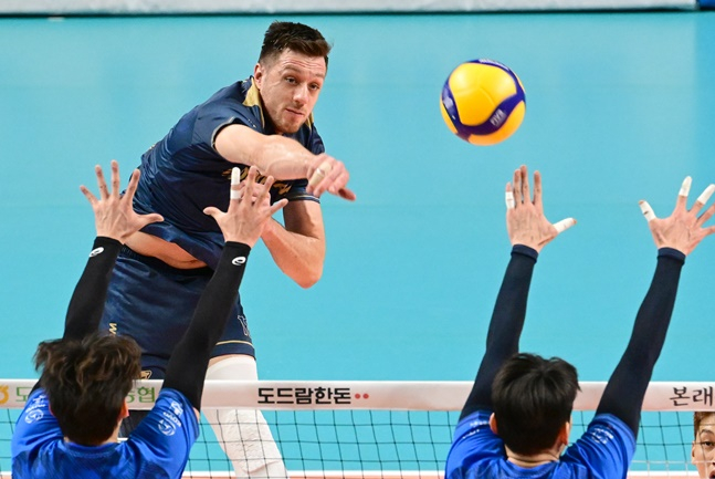 2세트 초반엔 한국전력의 기세에 밀렸다. 타이스와 서재덕, 임성진의 공격이 연달아 적중했다.