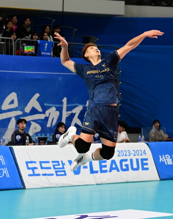 우리카드의 아웃사이드 히터 한성정이 훨훨 날았다. 팀 공격의 13.27%만을 맡았지만 공격 성공률은 76.92%에 달했다. 공격 효율도 61.54%로 높았다.