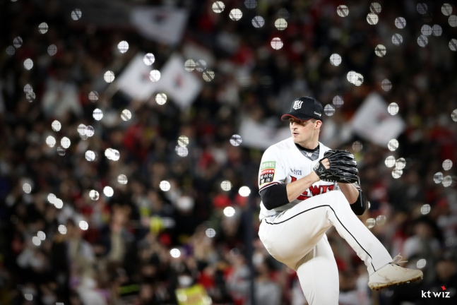 이에 맞서 KT는 모범생 외국인 에이스 벤자민이 선발 출격한다. 벤자민은 지난해 5월 윌리엄 쿠에바스의 대체 외국인 투수로 KT 유니폼을 입었다. 지난 시즌 벤자민은 17경기에 선발 등판해 5승 4패 평균자책점 2.70의 좋은 성적을 내며 올해 재계약에 성공했다. 올 시즌에도 벤자민은 위력적인 투구를 해냈다. 올 시즌 29경기에 선발 등판해 15승 6패 평균자책점 3.54를 마크했다. NC 페디에 이어 다승 부문 단독 2위였다. 총 160이닝 동안 세부 성적은 149피안타(12피홈런) 45볼넷 157탈삼진 79실점 63자책 WHIP 1.21, 피안타율 0.240. 퀄리티 스타트 투구는 11차례 성공했다.