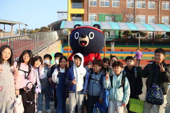 이날 캠페인에는 사무국 임직원들이 초등학교 앞 신호등에서 학생들이 안전하게 횡단보도를 건널 수 있도록 지도했다. 교통지도와 함께 교내에서 운영했던 김천상무 마스코트 슈웅 탈 역시 초등학생들에게 인기 만점이었다.