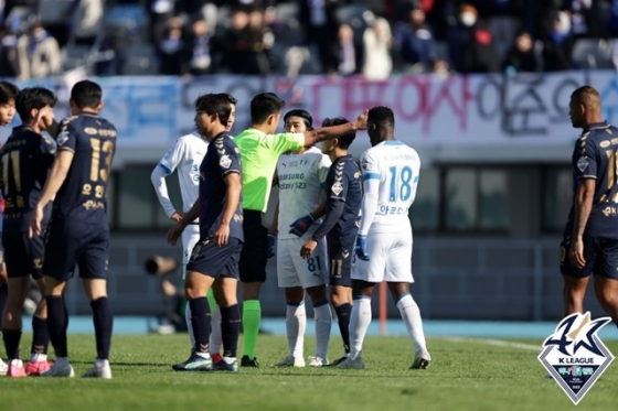 시작도 좋지 않았다. 전반 14분 카즈키가 퇴장을 당했다. 상대 김도윤과 신경전을 벌였는데, 감정을 다스리지 못했는지 몸으로 강하게 밀어 넘어뜨렸다. 이는 비디오판독(VAR)으로 이어졌다. 수원은 최악의 결과를 받아들여야 했다. 주심은 카즈키를 향해 레드카드를 꺼내들었다. 수원은 선제골까지 허용했다. 전반 33분 코너킥 과정에서 수원FC 우고 고메스가 깔끔한 헤더슛을 성공시켰다.