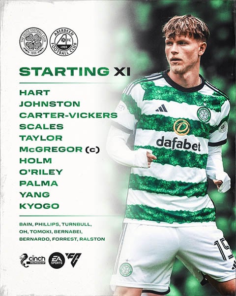 셀틱은 4-3-3 포메이션으로 경기에 나섰다. 스리톱은 루이스 팔마-후루하시 쿄고-양현준이었고 중원은 오딘 티아고 홈-칼럼 맥그리거-매튜 오레일리가 형성했다. 포백은 그렉 테일러, 리암 스케일스, 캐머런 카터-비커스골문은 조 하트가 지켰다. 오현규는 교체 명단에 이름을 올렸다.