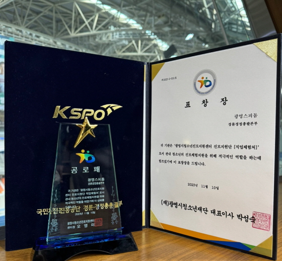 국민체육진흥공단 경륜경정총괄본부는 지난 10일 광명시청소년수련원에서 열린 '2023 광명시 청소년진로지원센터 연합 보고대회'에서 KSPO 방송전문가 직업체험 클래스를 통한 관내 청소년 진로체험지원 공로를 인정받았다.