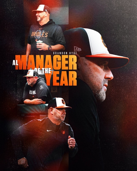 한편 아메리칸리그에서는 브랜든 하이드(50) 볼티모어 오리올스 감독이 수상했다. 그는 프랭크 로빈슨(1989년), 데이비 존슨(1997년), 벅 쇼월터(2014년)에 이어 4번째로 올해의 감독상을 탄 볼티모어 사령탑이 됐다. 하이드는 1위표 30장 중 무려 27장을 쓸어담으면서 이견 없는 수상자가 됐다.