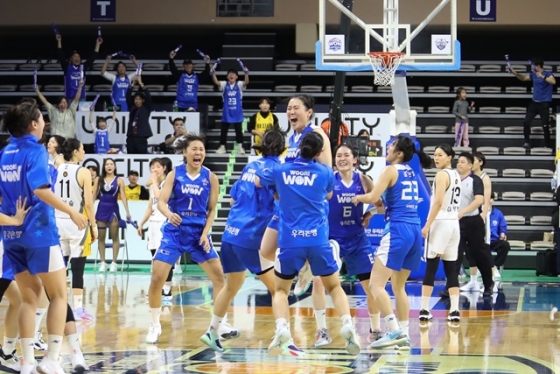 여자프로농구 아산 우리은행이 '라이벌' 청주 KB스타즈를 잡아냈다. 짜릿한 역전승이었다.