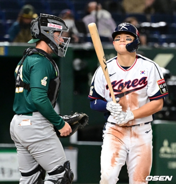 타선도 도와주지 않았다. 5회 1사에서 노시환이 좌익선상 2루타로 치고 나갔다. 윤동희의 타구를 호주 2루수가 뒤로 흘리자 1, 3루가 됐다. 호주는 여기서 새뮤얼 홀란드로 발 빠르게 마운드를 교체했고, 홀란드는 김도영을 헛스윙 삼진, 나승엽을 중견수 뜬 공으로 돌려세우며 이닝을 마무리했다. 7회에는 윤동희의 몸에 맞는 볼, 상대 실책으로 인한 노시환의 출루로 1사 1, 2루가 만들어졌으나, 문현빈이 병살타를 치면서 또 한 번 득점이 무산됐다.