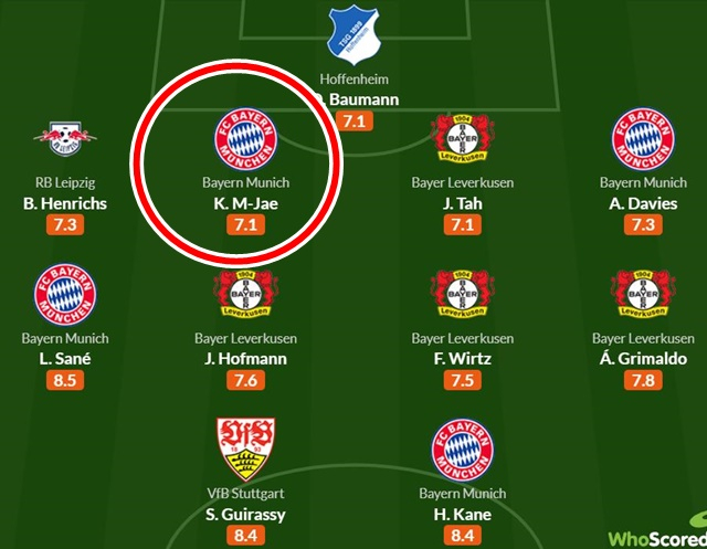 스포츠전문 스코어90도 김민재를 분데스리가 베스트11에 선정했다. 포메이션 4-4-2에 요나단 타와 함께 센터백 포지션에 포함됐다.