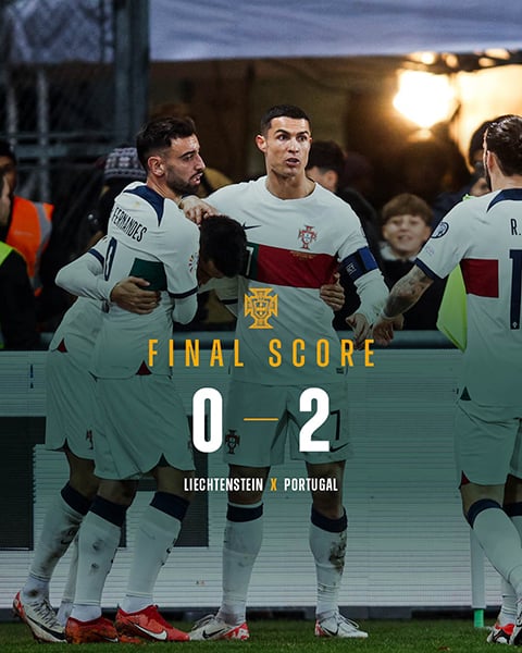포르투갈은 17일(한국시간) 리히텐슈타인 파두츠의 라인파크 경기장에서 열린 리히텐슈타인과의 유로 2024 예선 J조 9차전 경기에서 2-0으로 승리했다. 유로 2024 예선에서 9전 전승을 구가한 포르투갈은 J조 1위를 굳건히 지켰다.