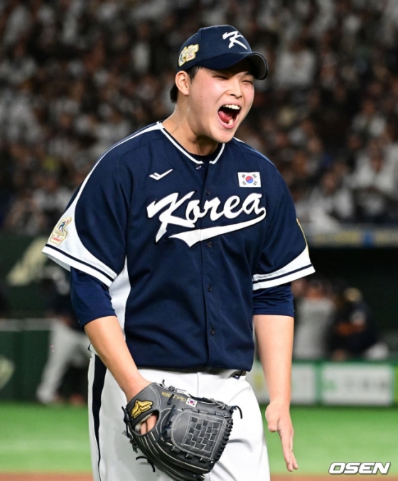 최지민은 9회에도 마운드에 올라 대표팀 뒷문을 완벽히 틀어막았다. 선두타자 오키바야시를 시속 145㎞ 빠른 공을 한복판에 던져 좌익수 뜬 공으로 돌려세웠다. 후지와라에게는 로케이션을 다양하게 가져가면서 몸쪽 낮은 곳에 시속 134㎞ 슬라이더를 찔러 넣으며 루킹 삼진을 만들었다.