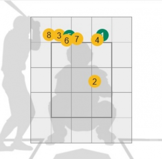 7회를 무실점으로 막은 최준용이 8회에도 마운드에 올랐다. 하지만사카쿠라에게 볼넷, 만나미에게 우전 안타를 내주고 1사 1, 2루 위기에 놓였고 최지민이 등판했다. 카도와키를 상대한 최지민은 하이 패스트볼과 슬라이더를 활용해 카도와키를 압박했다. 2구 슬라이더를 제외한 모든 공이 스트라이크존 상단에 머물렀고 결국 몸쪽으로 온 8구째 시속 147㎞의 높은 공에 헛스윙을 끌어냈다. 카도와키를 잡은 이 타구에 도쿄돔 분위기가 홈플레이트 기준 좌우로 완벽히 나뉘었다. 이후 사토를 2구 만에 2루수 땅볼로 돌려세웠다.
