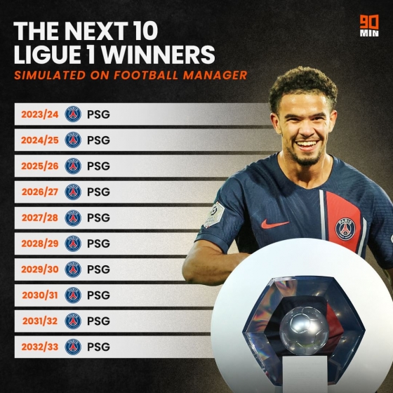 영국 매체 ‘90min’은 20일 축구 게임 ‘풋볼 매니저’의 시뮬레이션을 가동해 프랑스 리그1 향후 10시즌 우승 행보를 조명했다.