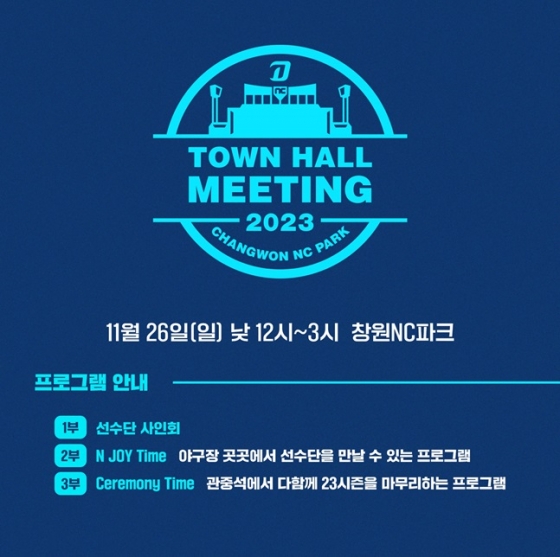 NC는 21일 "창원NC파크에서 26일 오후 12시부터 '2023 타운홀 미팅'을 연다"고 밝혔다.