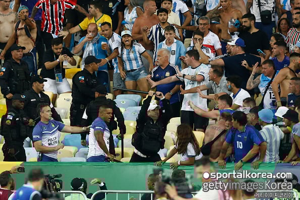 이후 아르헨티나 관중이 경찰을 향해 이물질을 던졌고, 경찰도 아르헨티나 관중들에게 곤봉을 휘두르며 대치했다.