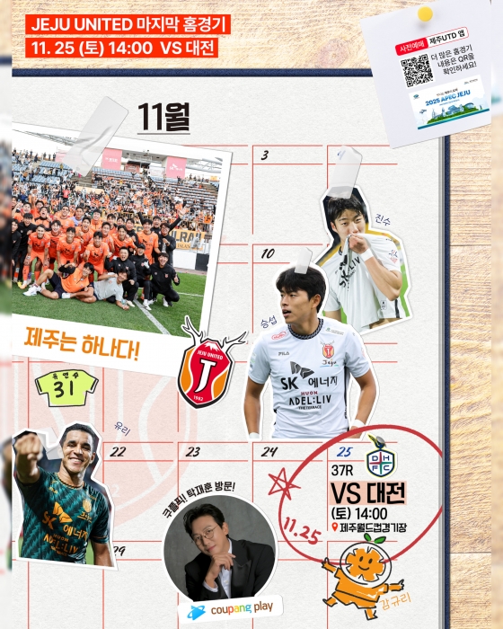 특히 이날 경기는 디지털 독점 생중계를 맡는 쿠팡플레이가 집중 조명하는 '쿠플픽'으로 지정됐다. 한준희 해설위원과 배성재 캐스터가 경기 중계를 맡고, 최근 방송 및 유튜브에서 유쾌한 입담으로 물오른 예능감을 선보이고 있는 탁재훈이 쿠플픽 프리뷰쇼 게스트로 출연한다. 정조국 감독대행과 친분이 두터운 것으로 알려진 탁재훈은 이날 또 다른 제주의 12번째 선수로 맹활약할 예정이다.