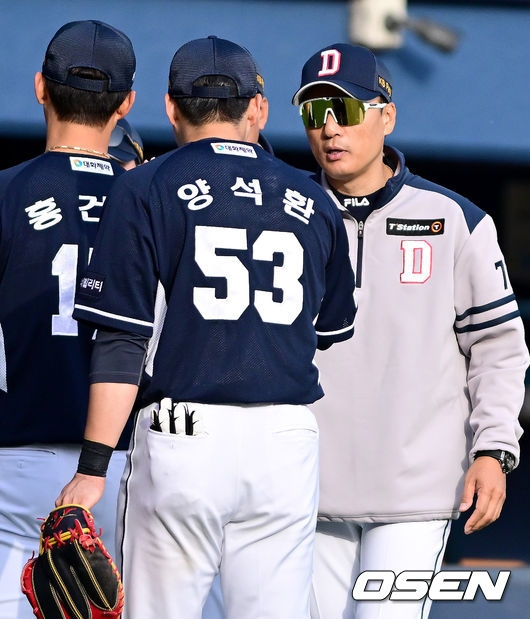 시즌 종료 후 이어진 있는 마무리 훈련에는 1군 선수들을 대거 포함시켰다. 이 중엔 내야수 강승호와 박계범, 박준영, 이유찬과 외야수 김인태 등은 물론이고 '잠실 홈런왕' 출신 김재환(35)도 있었다.