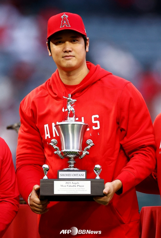 오타니는 올 시즌 타자로 타율 0.304에 44홈런 95타점 OPS(출루율+장타율) 1.066을 기록했다. 투수로는 132이닝 동안 10승 5패 평균자책점(ERA) 3.14 167탈삼진을 기록했다. 시즌 막판 팔꿈치 부상으로 조기 이탈했음에도 거둔 놀라운 성과다. 이 같은 성적을 바탕으로 오타니는 생애 2번째 최우수선수(MVP)도 만장일치로 수상했다.