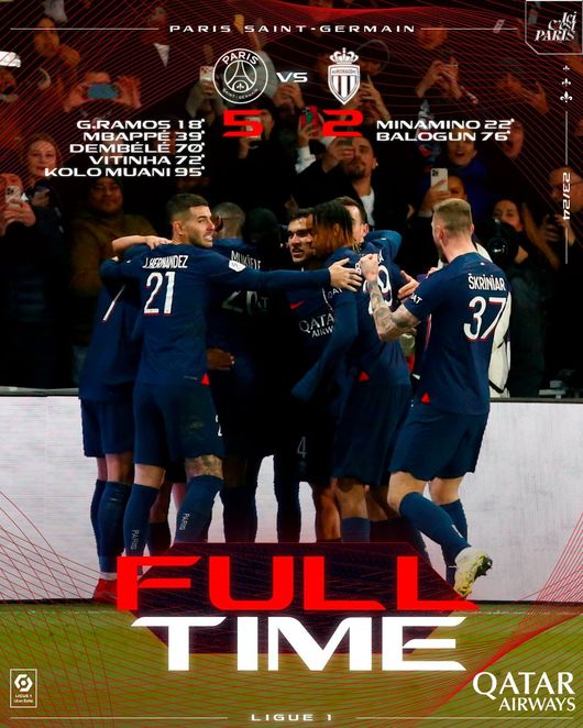 PSG는 25일(한국시간) 프랑스 파리의 파르크 데 프랭스에서 열린 AS모나코와의 2023/2024시즌 프랑스 리그앙 13라운드에서 5-2 승리를 거뒀다.
