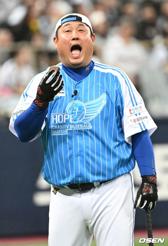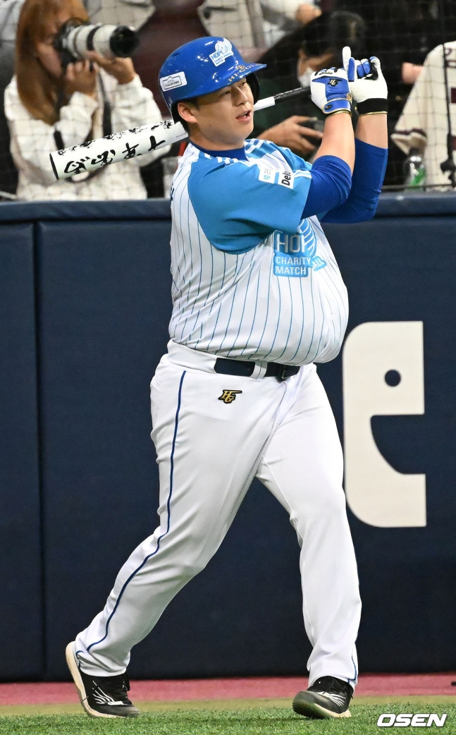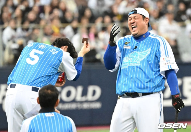 초코과자를 한 번에 삼키는 최준석(은퇴), 이대호를 연상시킨 'KBO 홈런왕' 노시환(한화), 이대형을 따라하는 김민석(롯데). 오타니 쇼헤이에 빙의한 정철원(두산). 2023년 마지막을 장식한 야구 대잔치는 모두가 웃고 즐긴 축제였다.