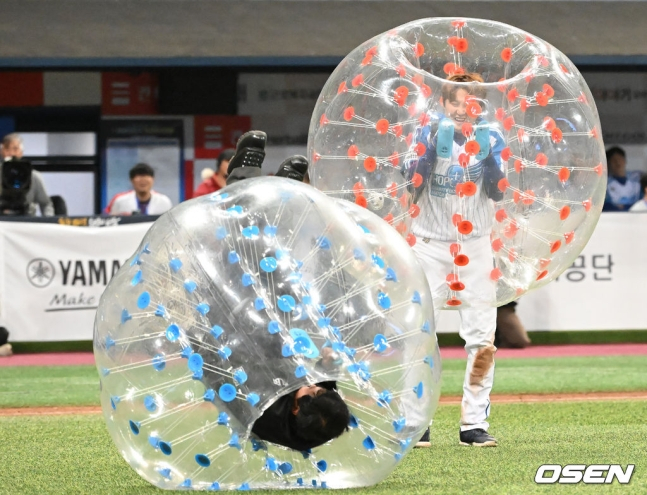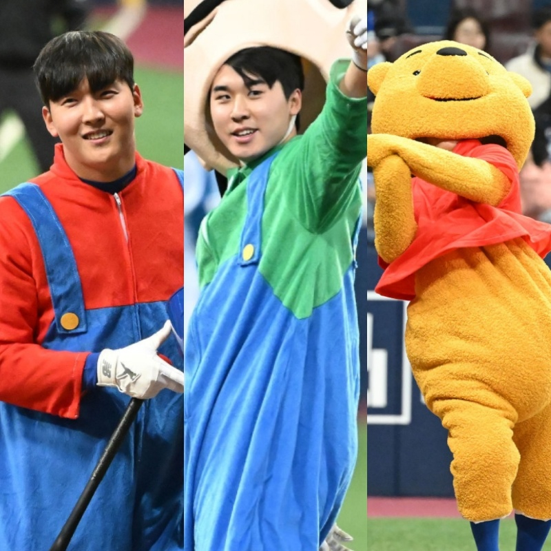 올해 마지막으로 팬들 앞에 나서는 경기인 만큼 선수들의 진심이 돋보였다. 선발 라인업부터 파격이었다. 단순히 투수가 타자로, 타자가 투수로 나서는 것을 뛰어 넘었다. 장발의 안권수가 포수 마스크를 쓰고 슈퍼 마리오와 정체를 알 수 없는 곰돌이 푸가 타석에 들어서는 등 시각적으로도 풍부한 볼거리를 제공했다. 최준용(롯데)과 장재영(키움)이 마리오 형제를 구성했고 인형의 머리탈까지 써 알 수 없던 곰돌이 푸와 뽀로로의 정체는 각각 윤동희(롯데)와 김민수(롯데)였다. 5년 전 이 대회에서 할리퀸 분장을 해 폭발적인 인기를 끌었던 김용의(은퇴)는 손흥민의 토트넘 유니폼을 입고 그라운드를 누볐다.