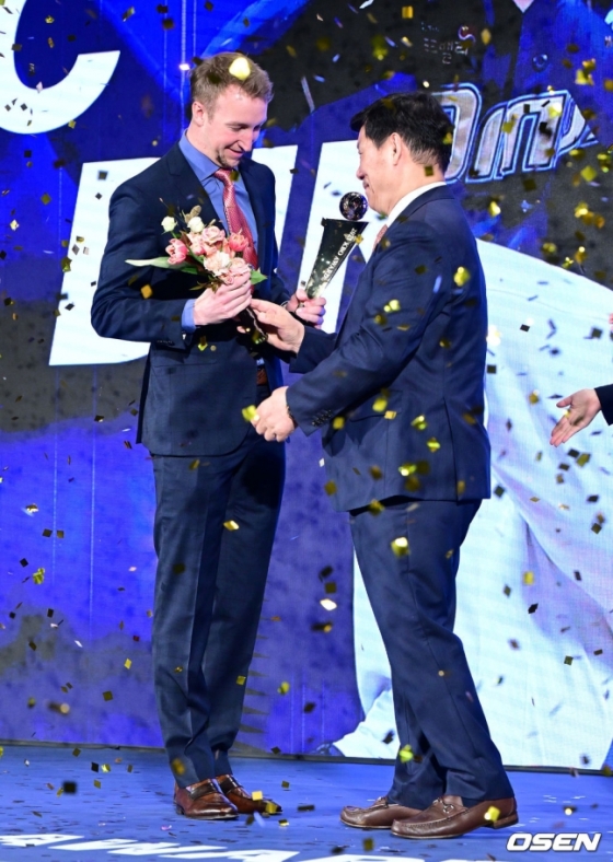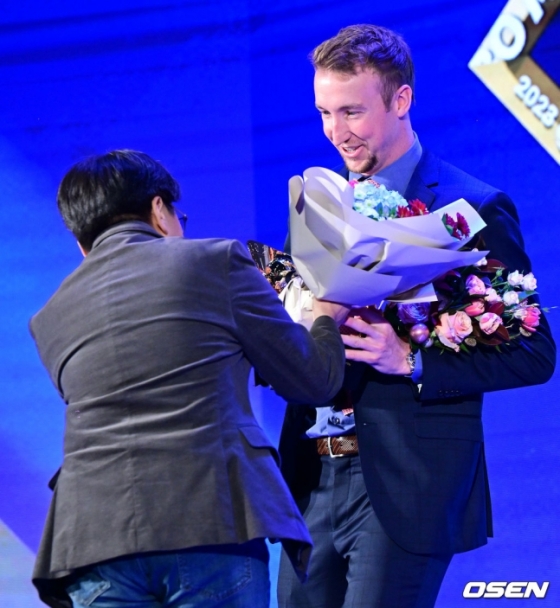 하지만 페디는 달랐다. 앞서 가을야구 일정을 모두 마친 뒤 미국으로 돌아갔던 페디는 이번 시상식을 위해 26일 아버지 스캇 페디와 함께 한국에 입국했다. 페디는 수상 후 마이크를 잡은 뒤 "믿어지지 않을 정도로 행복하다. KBO 리그 자체에 고마움을 전하고 싶다. NC에 왔기에 수상의 영광을 안을 수 있었다. 좋은 시즌을 보낼 수 있었다. 어머니와 아버지, 동생, 여자친구까지 먼 한국까지 와서 내게 많은 도움을 줬다. 아버지는 시상식 자리까지 와주셔서 정말 큰 힘이 됐다"고 소감을 밝혔다.