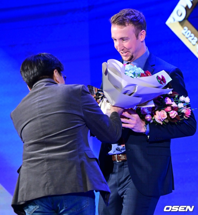페디는 "2023시즌 KBO 리그의 한 축을 맡아 영광스럽게 생각한다. 37년 만에 단일 시즌 20승-200탈삼진 기록을 작성한 것도 잘 알고 있다. 그런 대기록을 세웠던 선수들과 어깨를 나란히 할 수 있어 정말 감사하다"면서 "아쉽게도 올해 직접 뵙는 건 이번이 마지막일 것 같다. 이제 다시 훈련을 시작해야 한다. 그래서 내년 시즌 또 수상의 순간을 함께할 수 있기를 희망한다"며 다음을 기약했다.