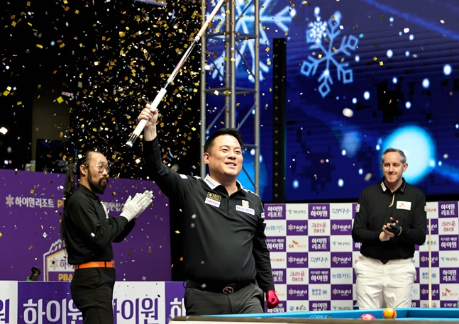조재호는 30일 강원도 정선군 하이원 그랜드호텔에서 열린 '하이원리조트 PBA-LPBA 챔피언십' PBA 결승전에서 '벨기에 강호' 에디 레펀스(SK렌터카)를 세트스코어 4-1(15-13, 15-5, 12-15, 15-5, 15-11)로 꺾고 우승을 차지했다.